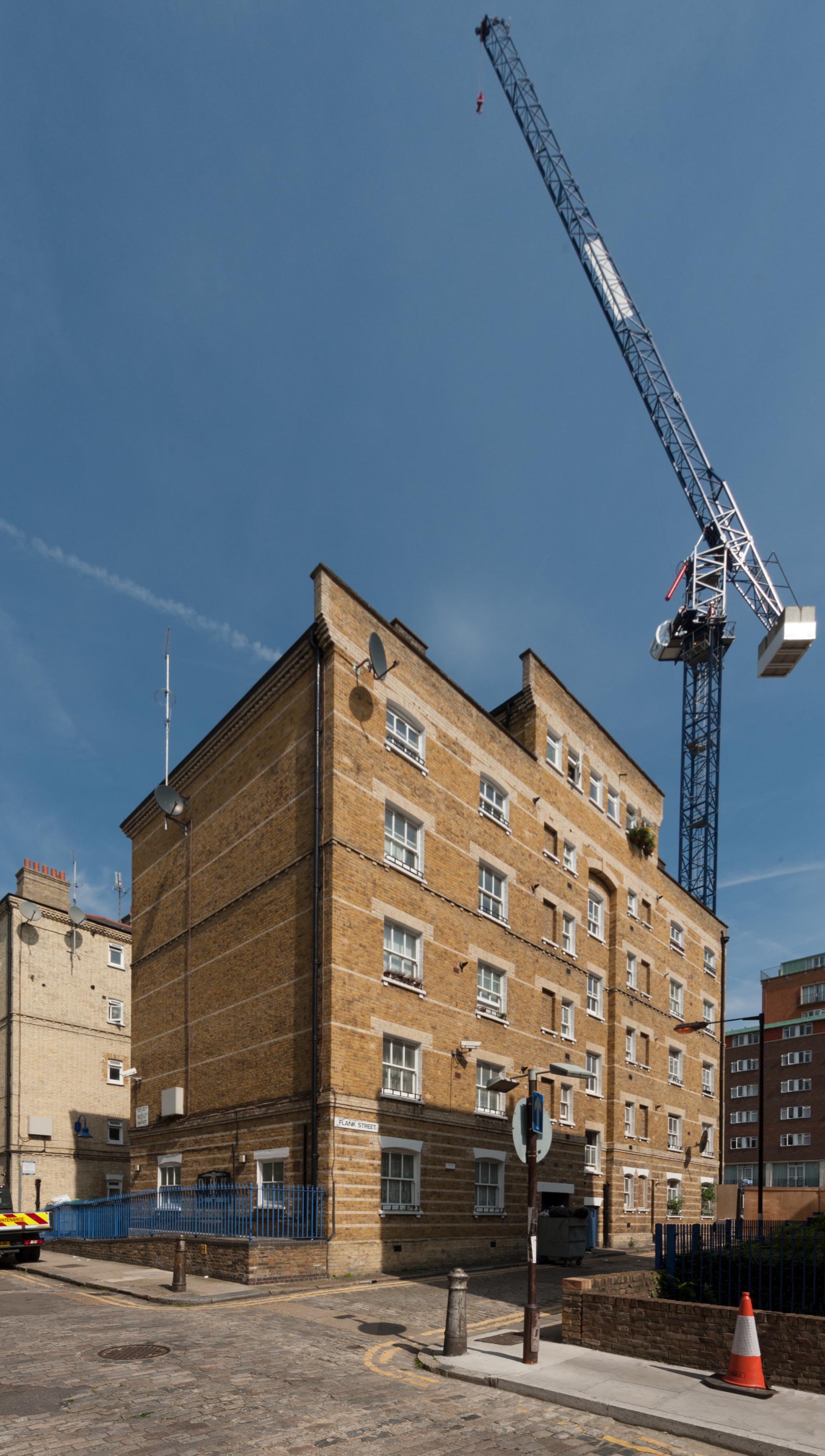 "title": "Block L, Peabody Estate Whitechapel, from the south-west in 2017",