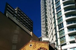 Perspective watercolour drawing of the Infants' School in the vestry of St George's Church