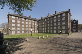 the first part of the Chicksand Estate. These stock-brick balcony-access five-