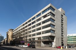 A view of the London College of Furniture building, later part of London Metropolitan University, from a digitised colour slide in the collection of the Tower Hamlets Archives: