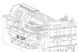 Fieldgate Street Great Synagogue as built in 1898–9, cutaway isometric view from the south-west